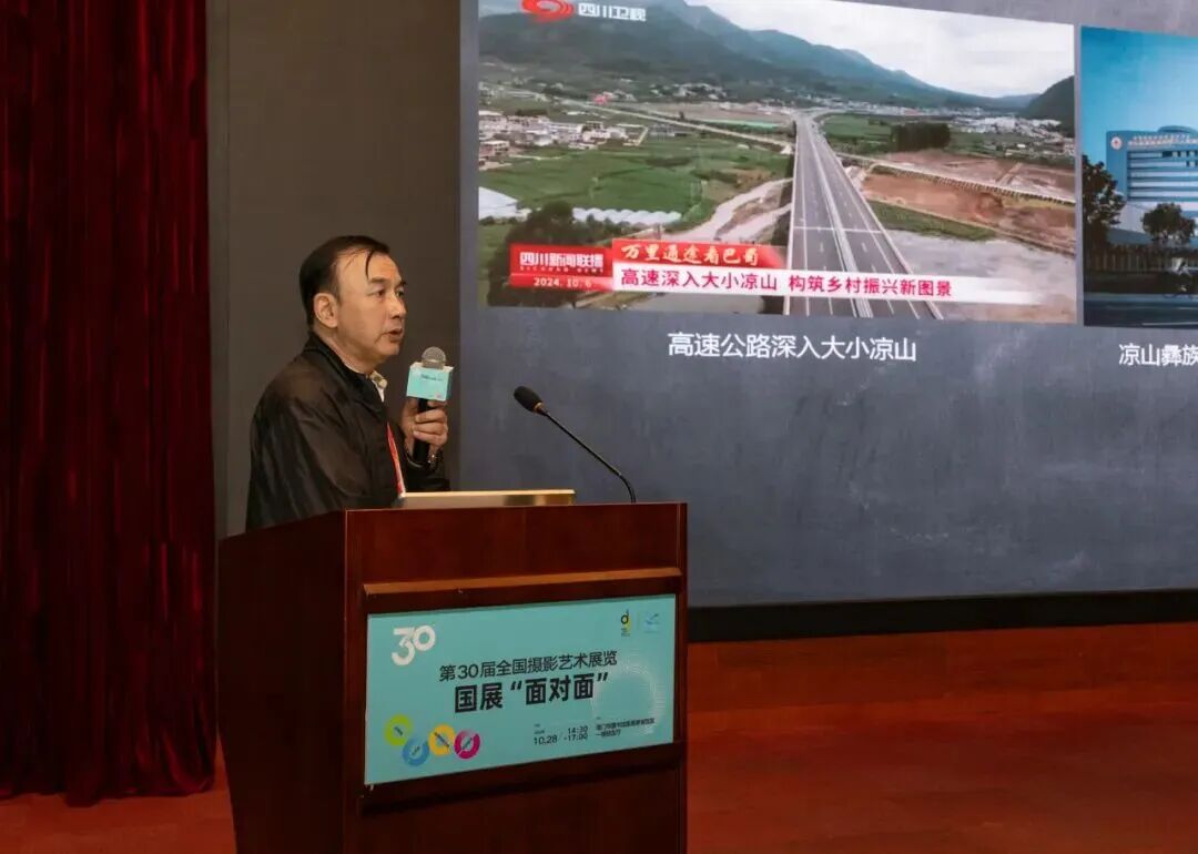 同日下午,依托本次全国影展搭建的交流平台,郑斌院长受邀在厦门市图书馆(集美新城馆区)报告厅举办的全国影展 “面对面” 分享交流活动中,以《以真诚为镜,记录时代新像》为主题,与现场观众、摄影爱好者及行业同仁展开深入交流。分享中,郑斌院长详细讲述了《彝族人新像》的创作历程 —— 为真实捕捉当代彝族同胞的生活风貌,他曾多次深入四川凉山彝族自治州美姑县,以 “观察者” 与 “记录者” 的双重身份,走进村寨、融入生活,捕捉当代彝族同胞的真实面貌。